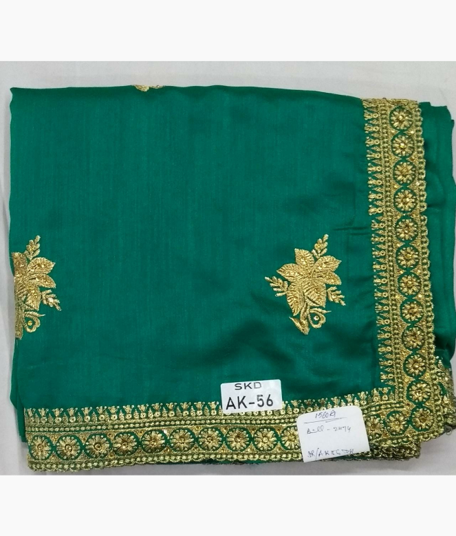 All over golden colour zari flower leaf and design on saree. Sequence work on flower booty on all over saree.