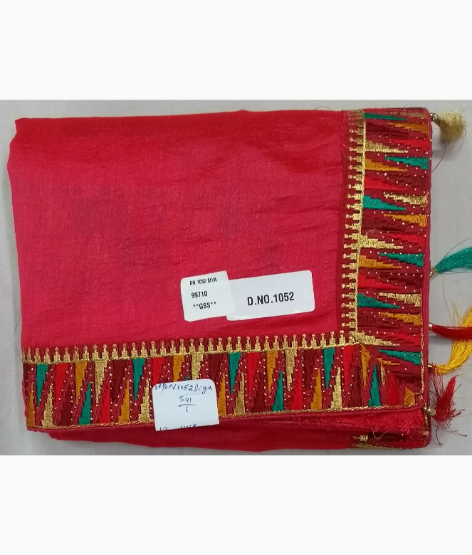 All over plain pallu border designer palton saree. Plain pallu with multicolour border patti and latkans on saree.
