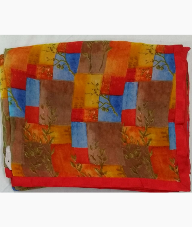 All over multi colour printed saree with tree design in multi colour check box's on saree.
