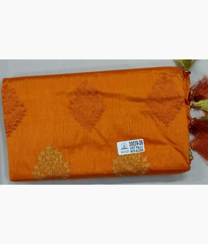 Border is of golden colour zari Patti design on saree. Matching same border of saree is on blouse patti for neck and sleeves.