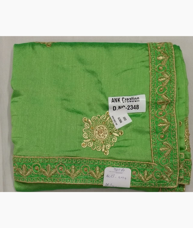 All over golden colour round design zari boota on saree with self colour thread and sequence work on saree.