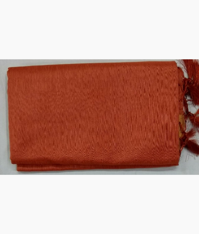 All over plain saree in rich linen cotton fabric. Pallu is of golden colour zari strip with full latkan.