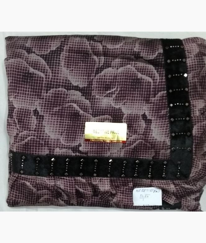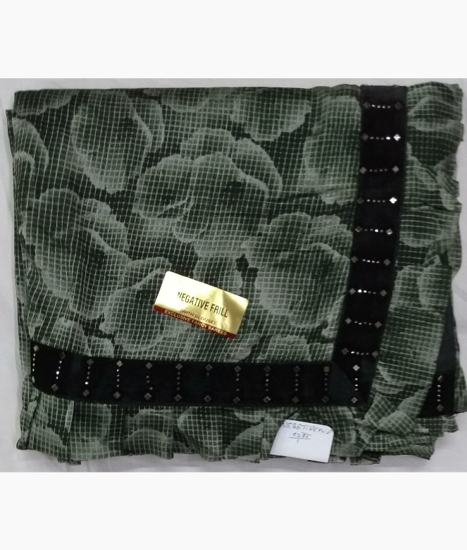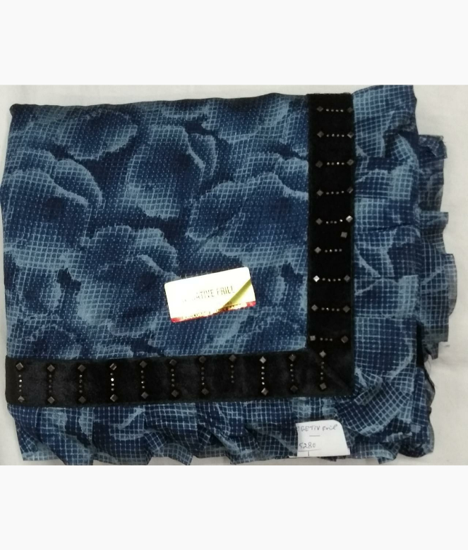 All over digital print flower design with excellent on saree. Border is of black colour velvet patti with mirror work and frill on saree.