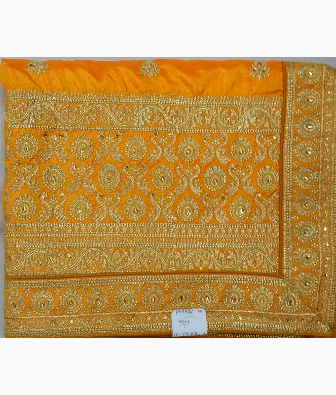 All over golden colour jari boota on saree. Sequence work outline on boota.