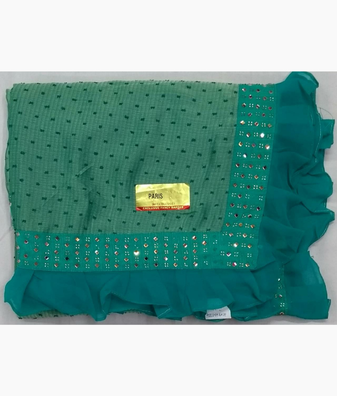 All over self colour thread dot design on saree. Frill design on all over on saree.