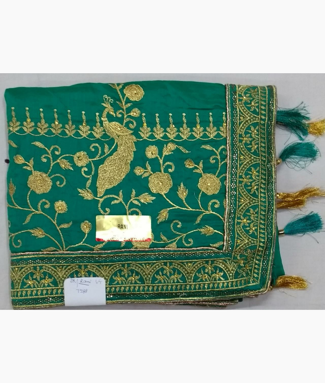 All over thread flower on Panel work of saree with fine jari and sequence work of high quality.
