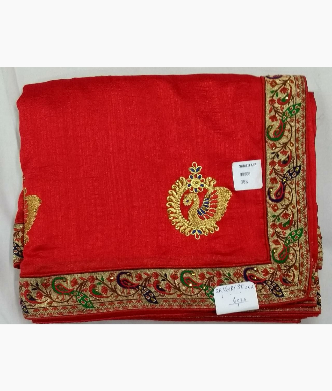 All over multi colour Peacock design booty of thread and zari with fine quality of work on saree with sequence work on booty.