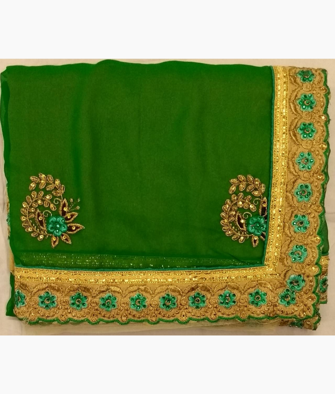 Border is of mirror and sequence work on saree. Matching work of saree border is on blouse for neck and sleeves.